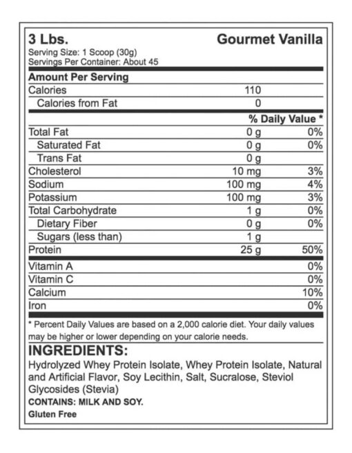 Proteína hidrolizada de suero (Whey Hydrolyzed Isolate): máxima pureza y ultra rápida absorción.