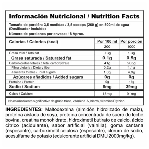 La Megaplex Creatine Power 10 lb de Nutramerican es una proteína hipercalórica reforzada con creatina, formulada para quienes buscan incrementar masa muscular, fuerza y recuperación de manera efectiva. Su mezcla de proteínas de alto valor biológico y carbohidratos de calidad aporta la energía necesaria para los entrenamientos más intensos, mientras que la creatina potencia el rendimiento y el crecimiento muscular. Presentada en un práctico empaque de 10 libras y en delicioso sabor vainilla, es la opción ideal para atletas y personas con metabolismo acelerado que necesitan un suministro prolongado de nutrientes para alcanzar sus objetivos.